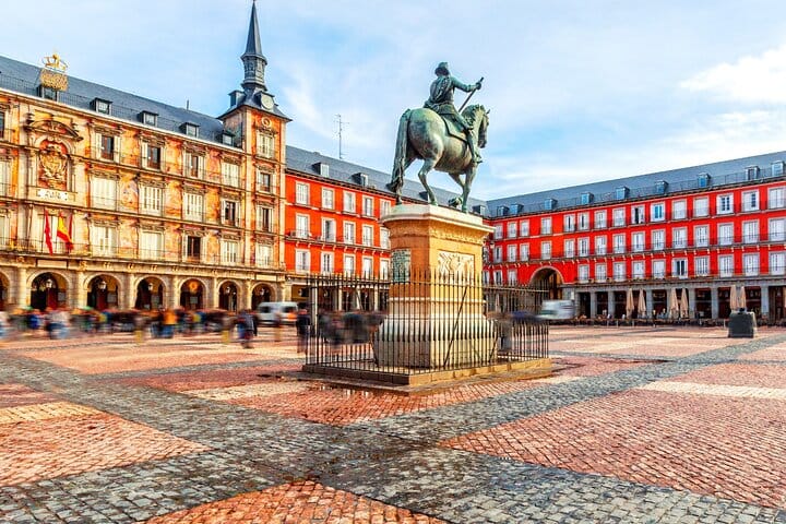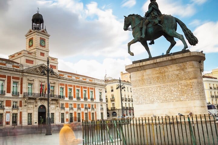 What you will visit: Museo Nacional del Prado, Puerta Felipe IV, El Retiro Park, Puerta de Alcalá, Cibeles Fountain, Plaza del Sol, Plaza Mayor, Mercado San Miguel, Plaza de Oriente, and the Royal Palace.
