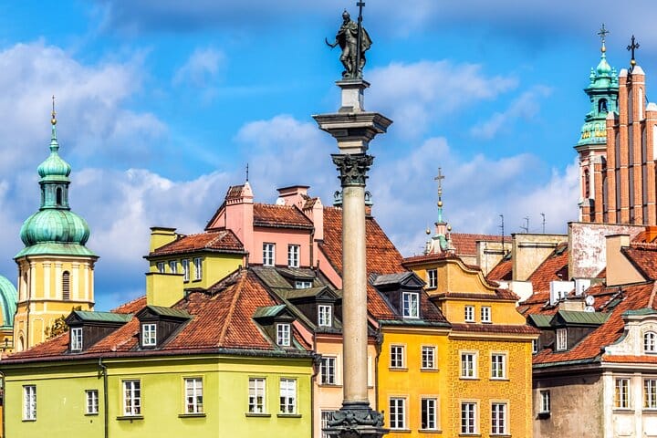 What you will visit: Visitation Church, New Town Market, Krasinski Palace, Warsaw Barbican, Old Town Market Square, Royal Castle, National Opera, Tomb of the Unknown Soldier, Saxon Garden, and Obelisk Drogowskaz.