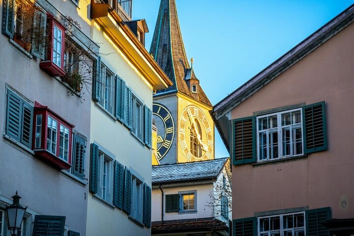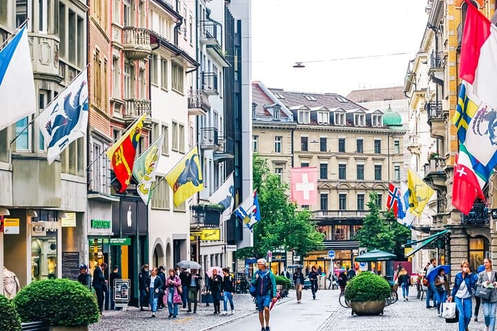 What you will visit: Landesmuseum, Bahnhofstrasse, Lindenhof Hill, St. Peter Church, Town Hall, Zurich Lake, Opera House, Grossmünster, Neumarkt, and Zurich Old Town.